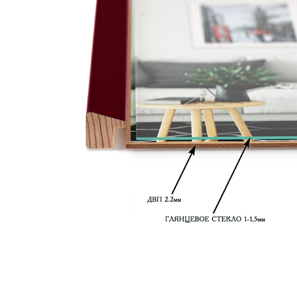 Рамка для фото дерев'яна 21х30 (А4) багет: AH2220-16 Бордовий (з глянцевим склом 1-1.5мм, двп) EmojiFrame
