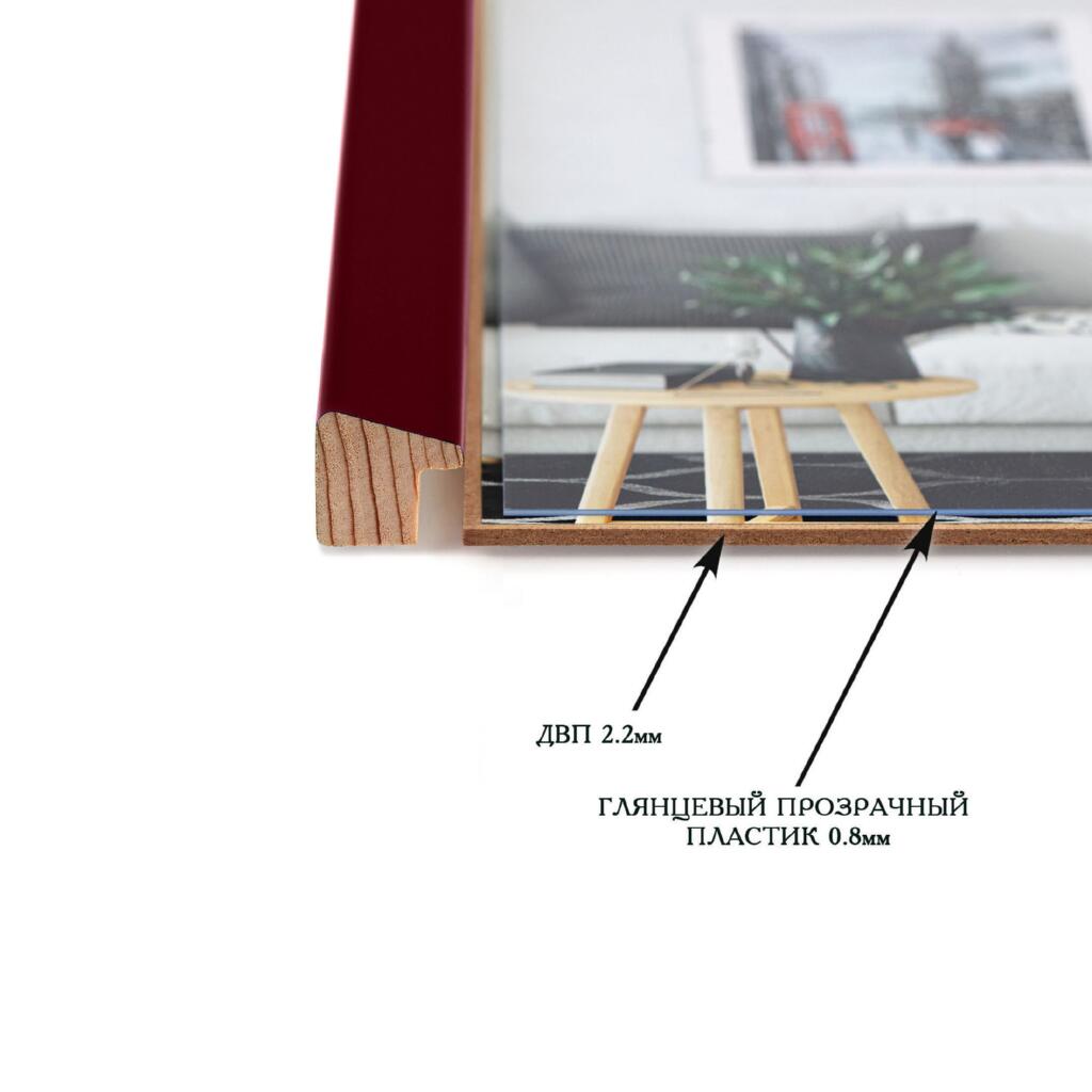 Рамка для дипломів дерев'яна 21х30 (А4) багет: AH2220-16 Бордовий (з глянцевим прозорим пластиком 0.8мм, двп) EmojiFrame