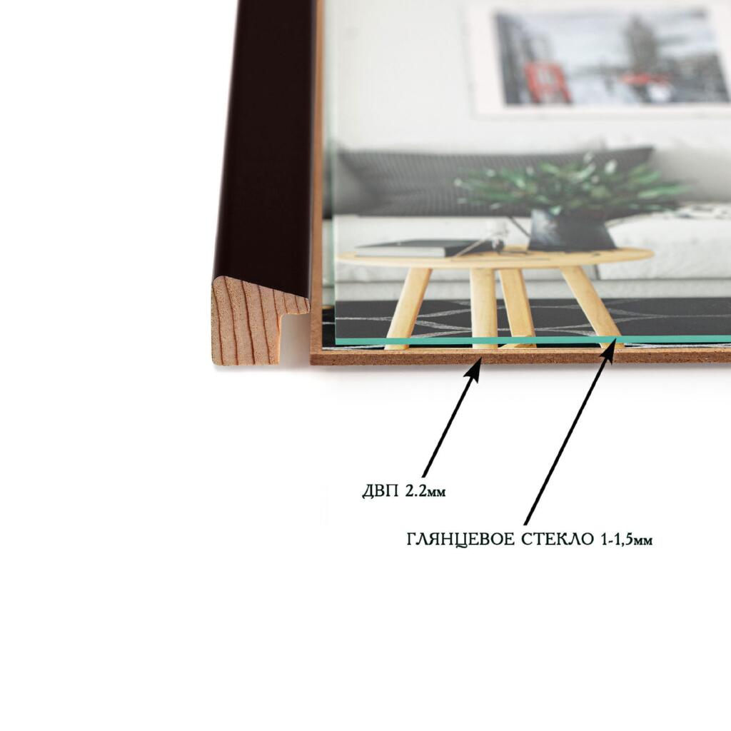 Рамка для фото дерев'яна 21х30 (А4) багет: AH2220-17 Темно-коричневий (з глянцевим склом 1-1.5мм, двп з ніжкою) EmojiFrame