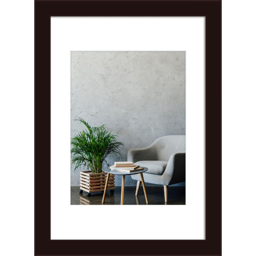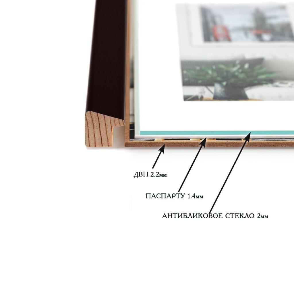 Фоторамка дерев'яна 21х30 (А4) під фото 15х20 багет: AH2220-17 Темно-коричневий (з антибліковим склом 2мм, паспарту, двп з ніжкою) EmojiFrame