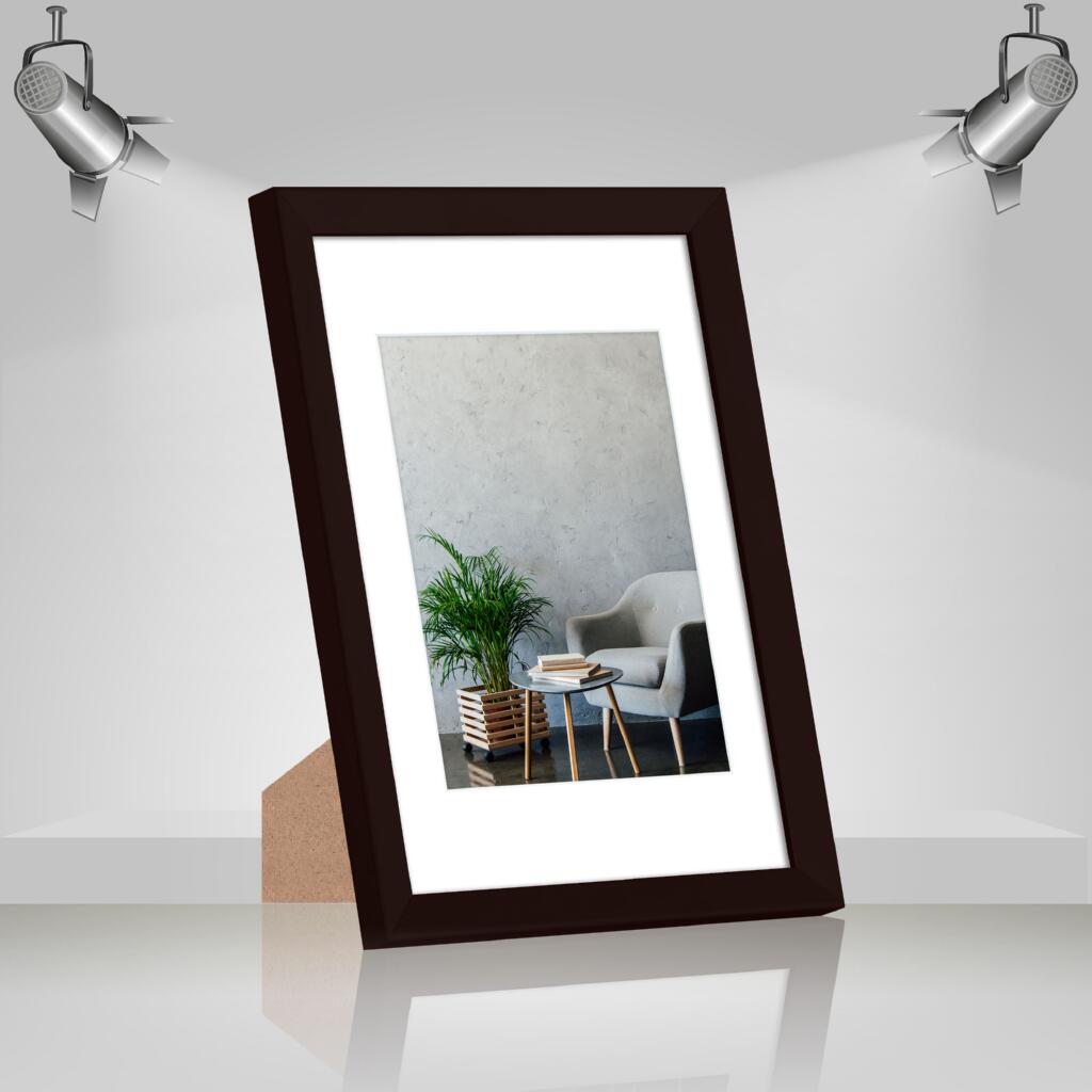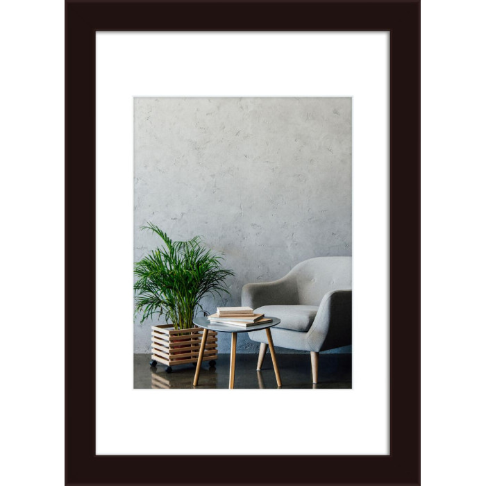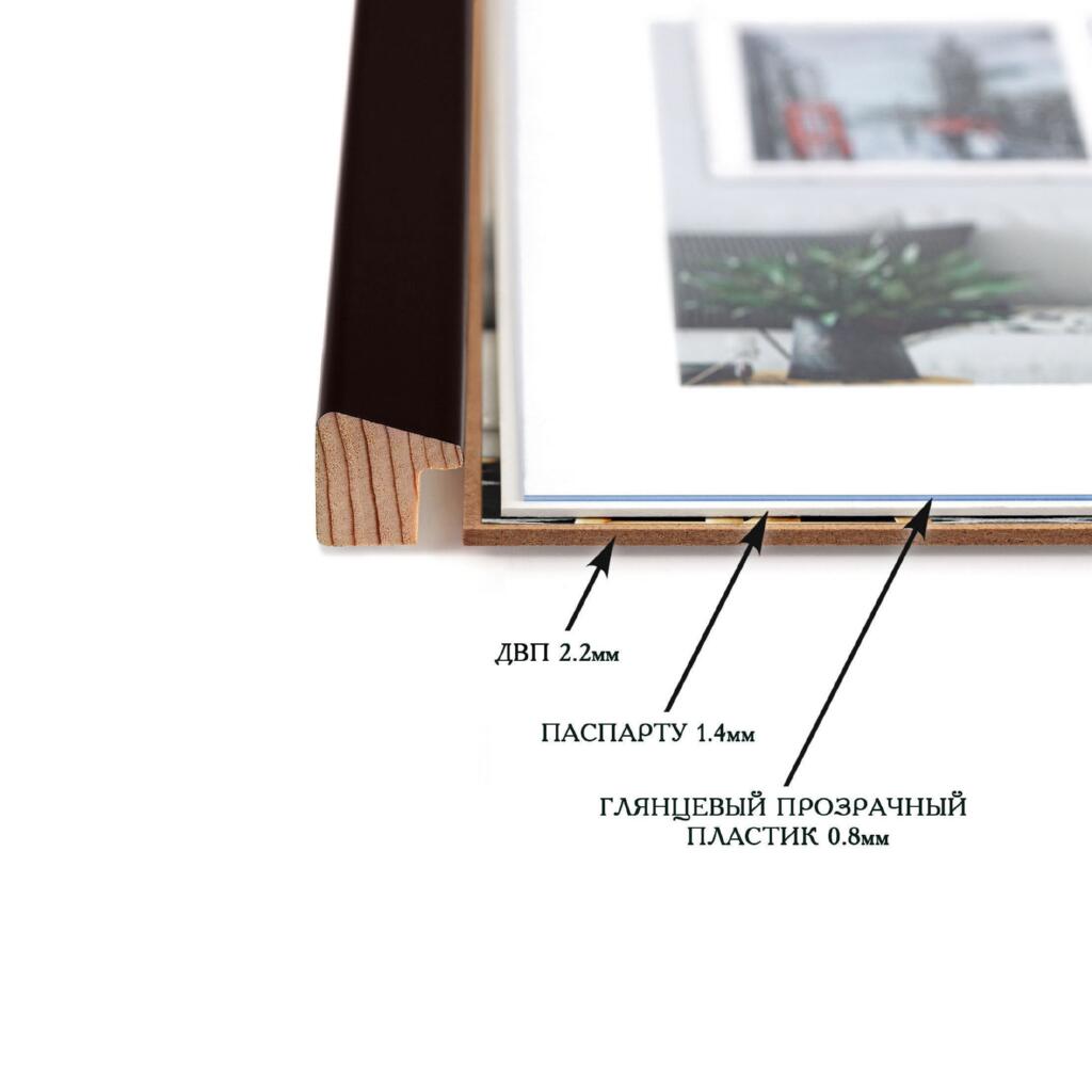 Фоторамка дерев'яна 21х30 (А4) під фото 15х20 багет: AH2220-17 Темно-коричневий (з глянцевим прозорим пластиком 0.8мм, паспарту, двп з ніжкою) EmojiFrame