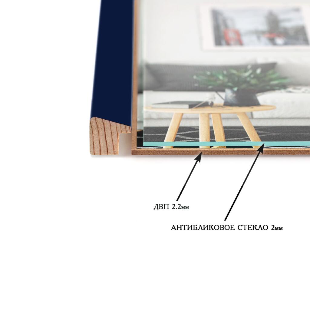 Фоторамка дерев'яна 21х30 (А4) багет: AH2220-18 Темно-синій (з антибліковим склом 2мм, двп) EmojiFrame