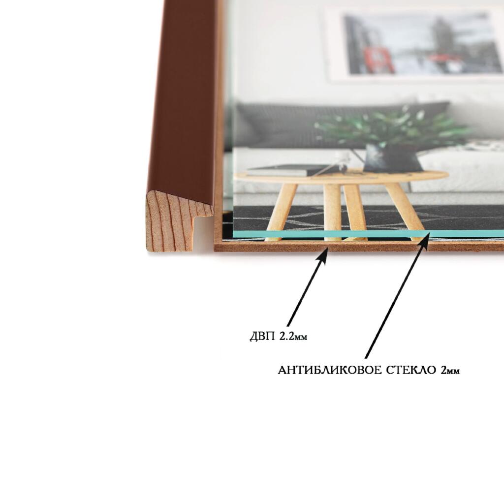 Фоторамка дерев'яна 10х15 багет: AH2220-04 Коричневий (з антибліковим склом 2мм, двп) EmojiFrame