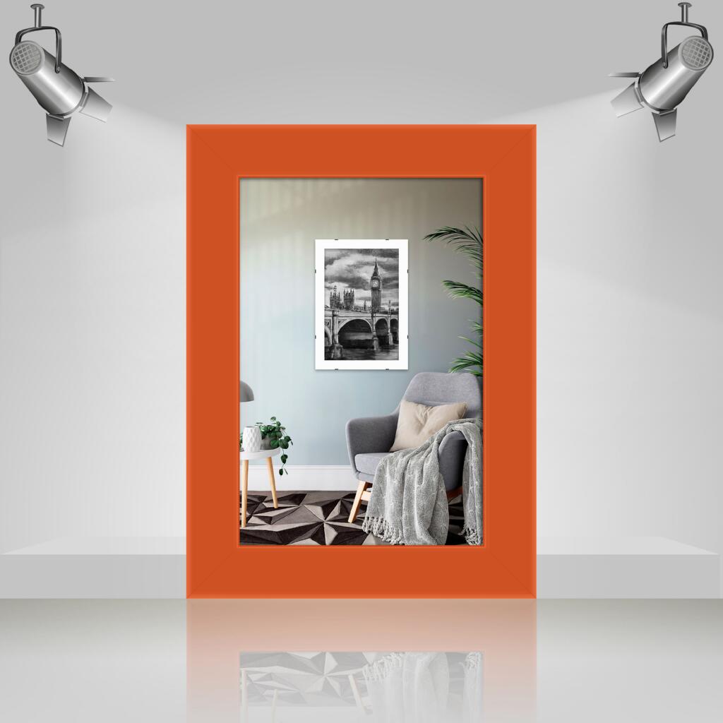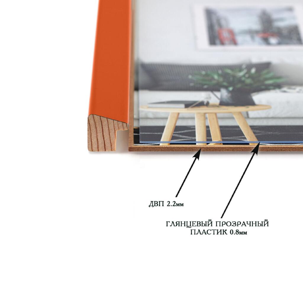 Фоторамка дерев'яна 10х15 багет: AH2220-06 Помаранчевий (з глянцевим прозорим пластиком 0.8мм, двп з ніжкою) EmojiFrame