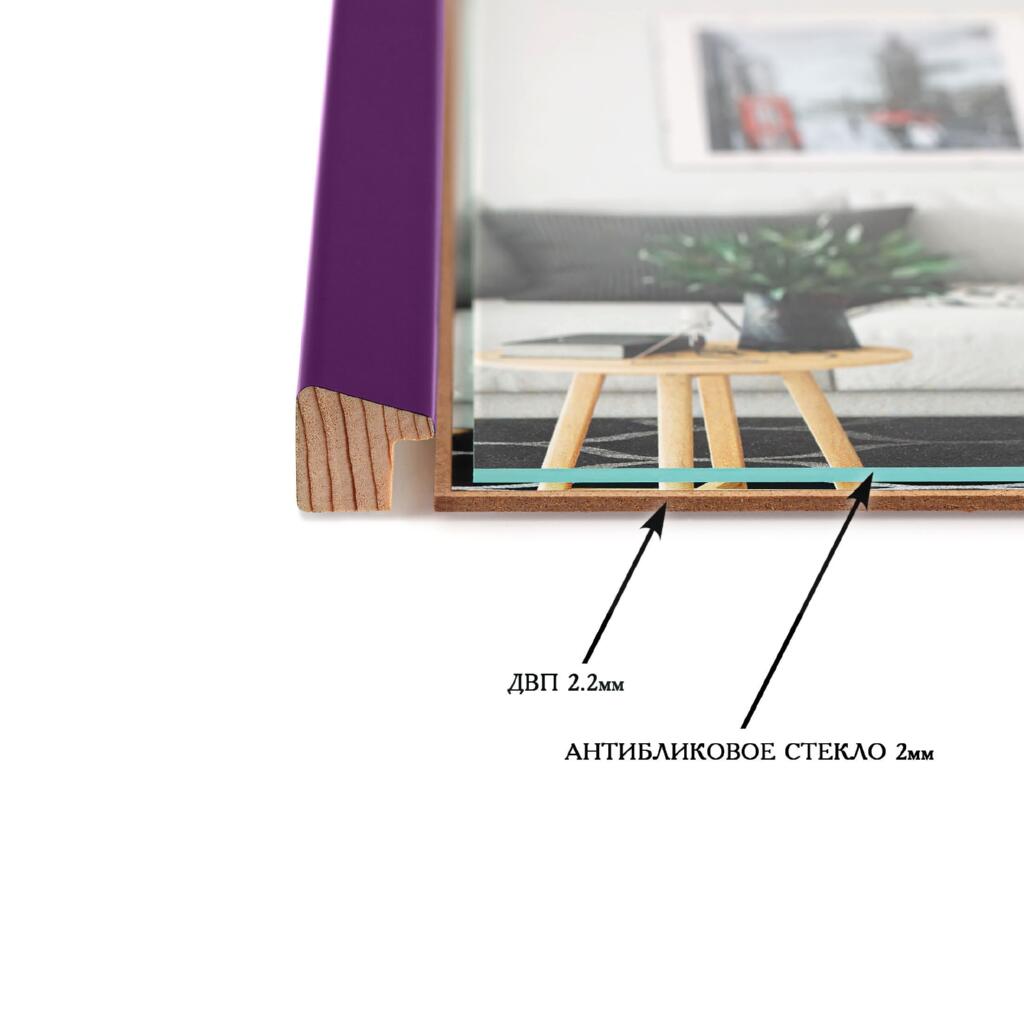 Фоторамка дерев'яна 10х15 багет: AH2220-14 Фіолетовий (з антибліковим склом 2мм, двп) EmojiFrame