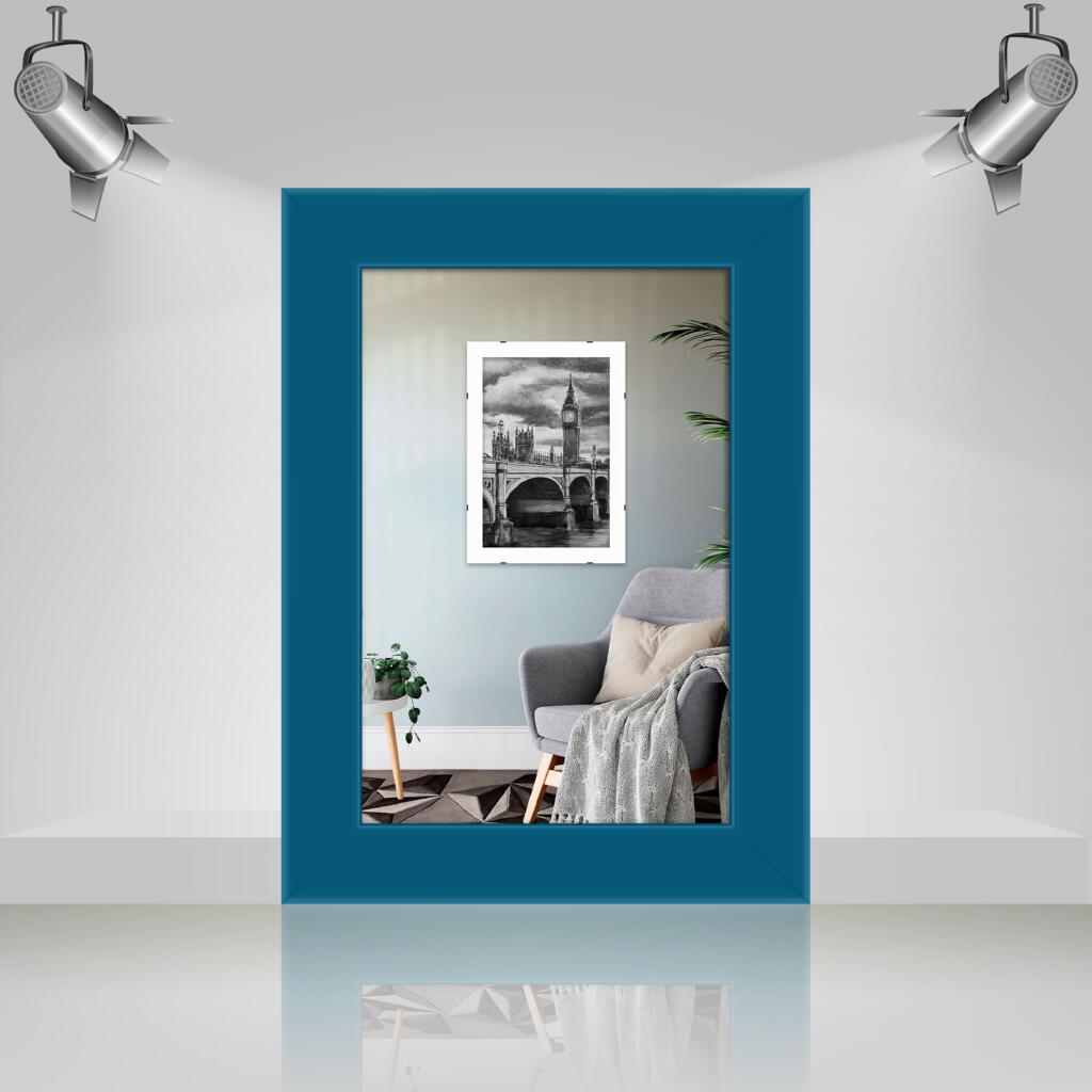 Фоторамка дерев'яна 10х15 багет: AH2220-15 Бірюзовий (з глянцевим прозорим пластиком 0.8мм, двп з ніжкою) EmojiFrame