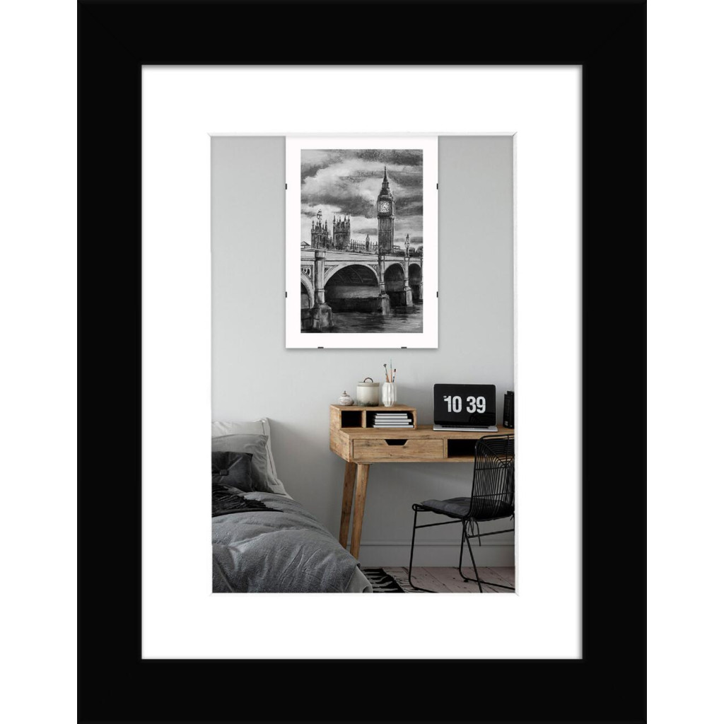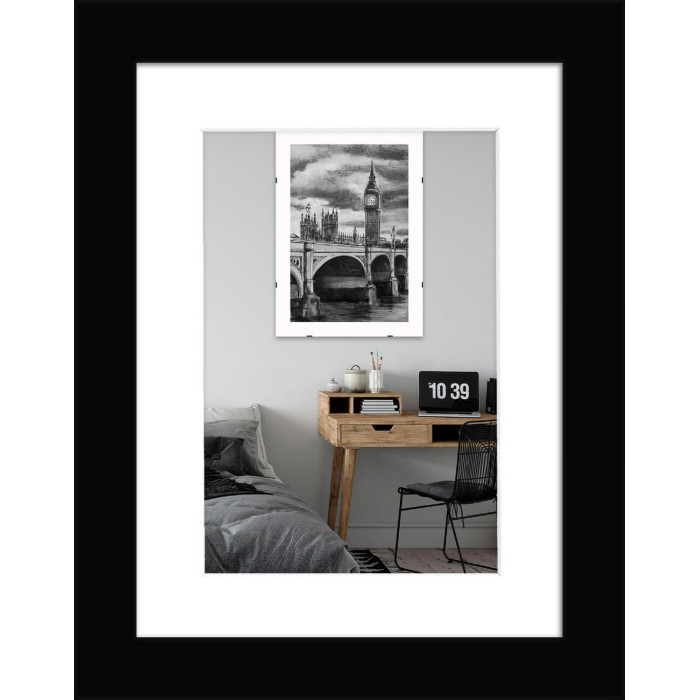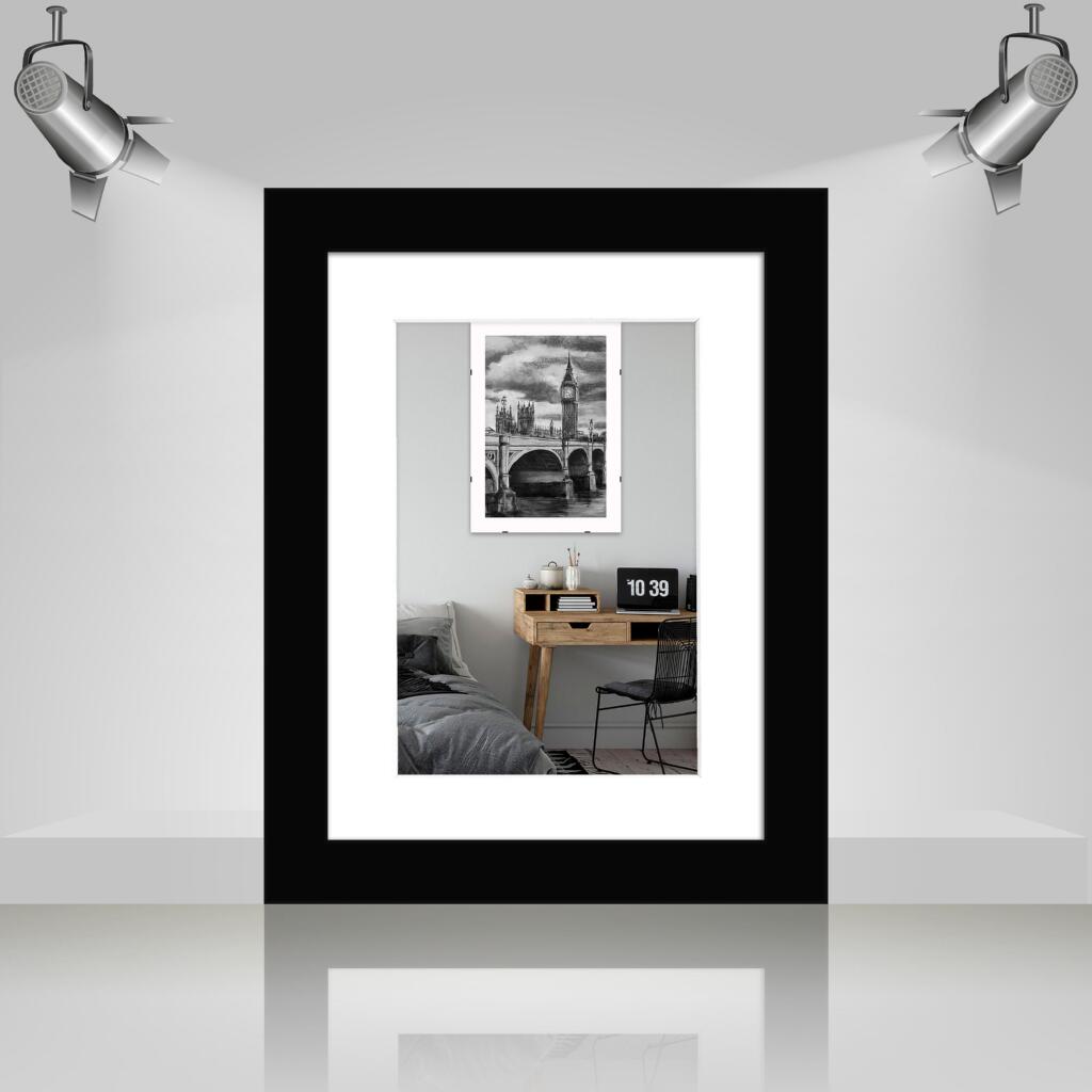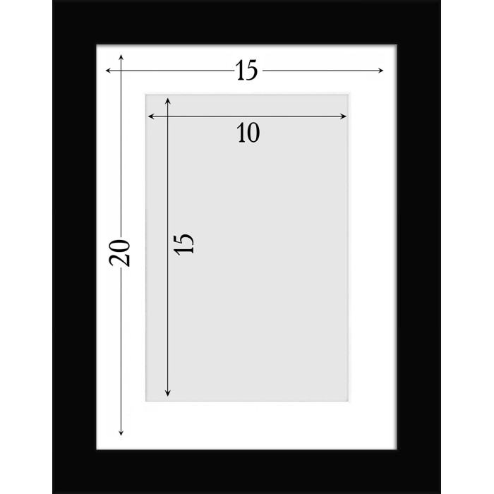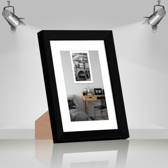 Фоторамка дерев'яна 15х20 під фото 10х15 багет: AH2220-03 Чорний (з глянцевим прозорим пластиком 0.8мм, паспарту, двп з ніжкою) EmojiFrame