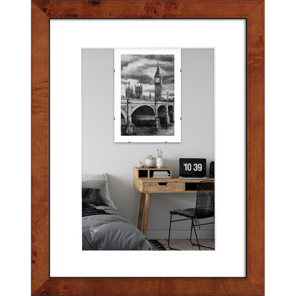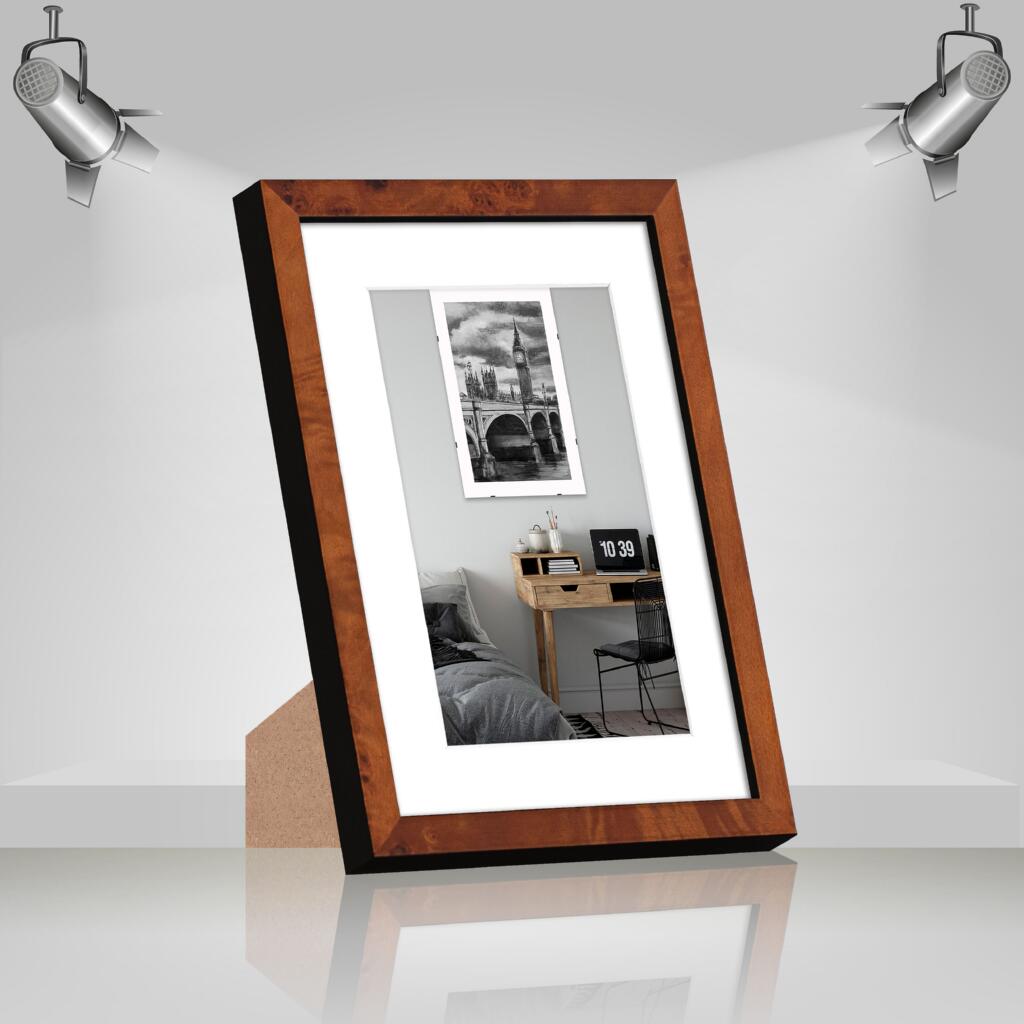 Фоторамка дерев'яна 15х20 під фото 10х15 багет: DL1508-01 Темне дерево (з антибліковим склом 2мм, паспарту, двп з ніжкою) EmojiFrame