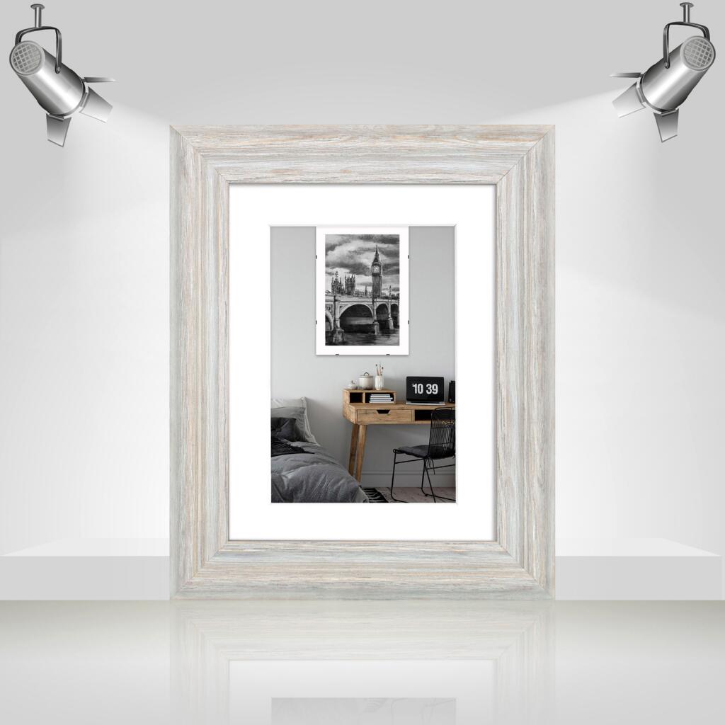 Фоторамка дерев'яна 15х20 під фото 10х15 багет: DL3303-01 Прованс (з антибліковим склом 2мм, паспарту, двп з ніжкою) EmojiFrame