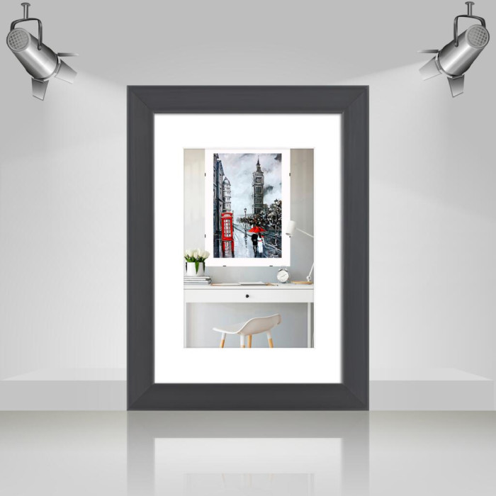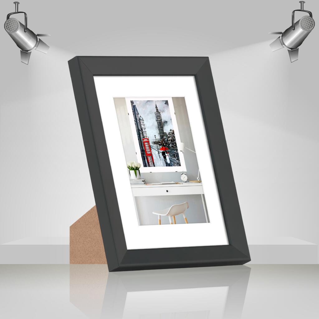 Рамка для фото дерев'яна 15х21 (А5) під фото 10х15 багет: AH2220-10 Сірий (з глянцевим склом 1-1.5мм, паспарту, двп з ніжкою) EmojiFrame
