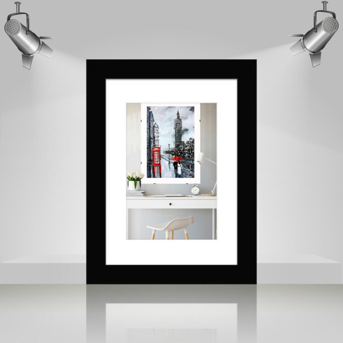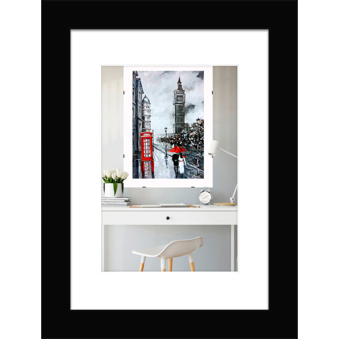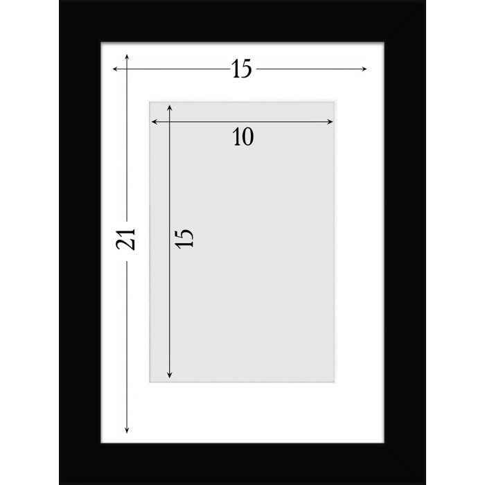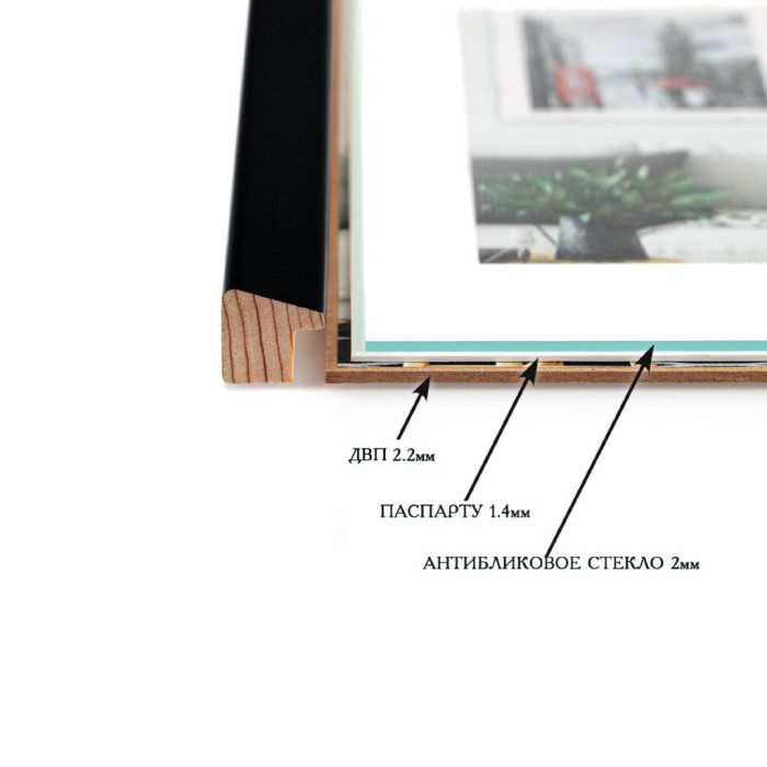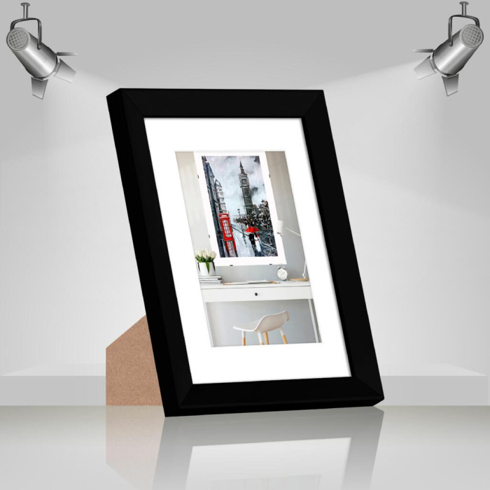 Фоторамка дерев'яна 15х21 (А5) під фото 10х15 багет: AH2220-03 Чорний (з антибліковим склом 2мм, паспарту, двп з ніжкою) EmojiFrame
