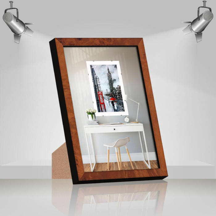 Фоторамка дерев'яна 15х21 (А5) багет: DL1508-01 Темне дерево (з глянцевим прозорим пластиком 0.8мм, двп з ніжкою) EmojiFrame