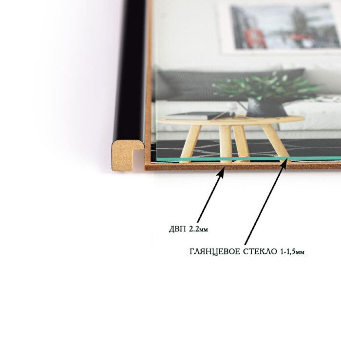 Рамка для фото дерев'яна 20х30 багет: DL1506-37 Чорний глянець (з глянцевим склом 1-1.5мм, двп) EmojiFrame