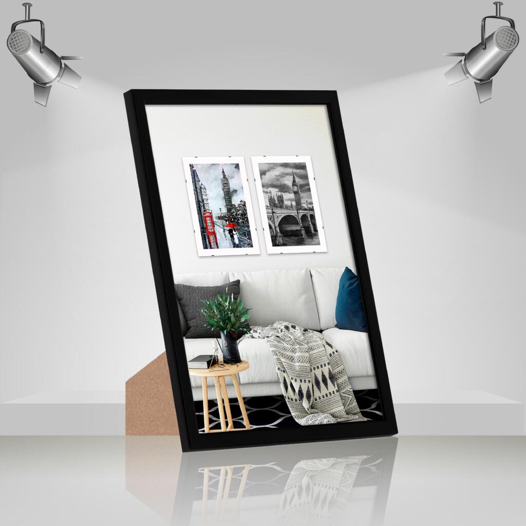 Фоторамка дерев'яна 20х30 багет: DL1506-37 Чорний глянець (з глянцевим прозорим пластиком 0.8мм, двп з ніжкою) EmojiFrame