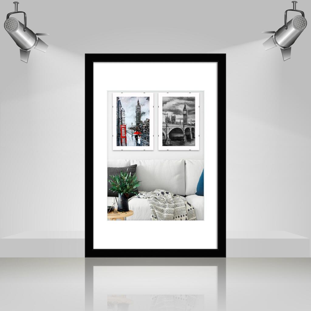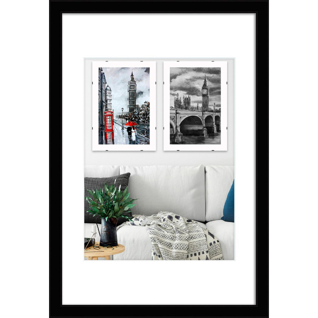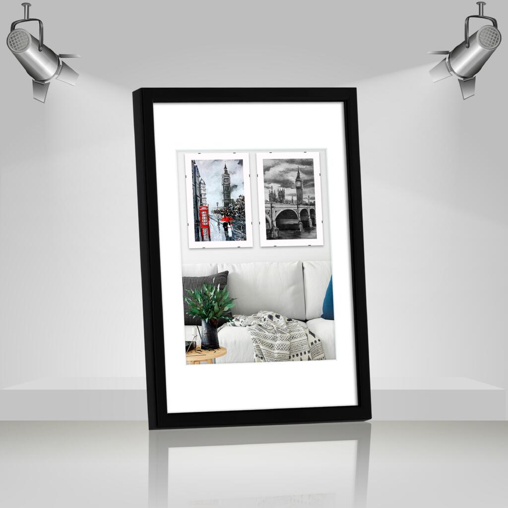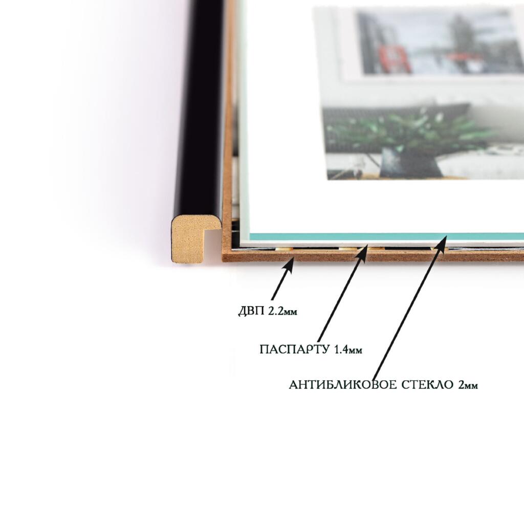 Фоторамка дерев'яна 20х30 під фото 15х20 багет: DL1506-37 Чорний глянець (з антибліковим склом 2мм, двп, паспарту) EmojiFrame