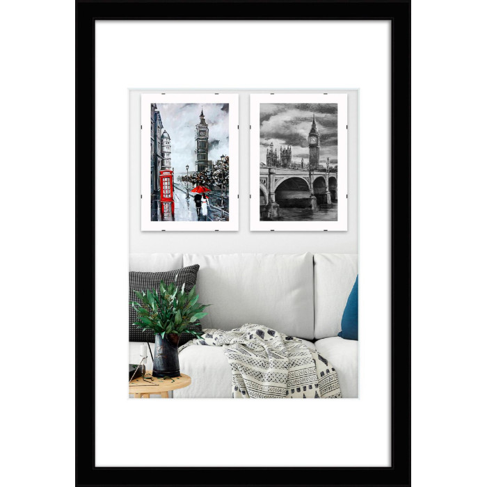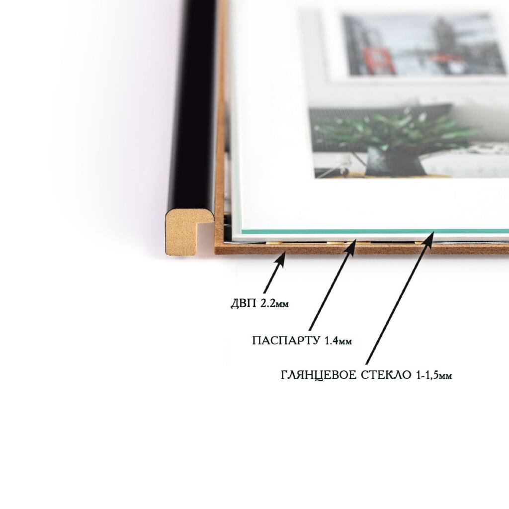 Рамка для фото дерев'яна 20х30 під фото 15х20 багет: DL1506-37 Чорний глянець (з глянцевим склом 1-1.5мм, двп, паспарту) EmojiFrame