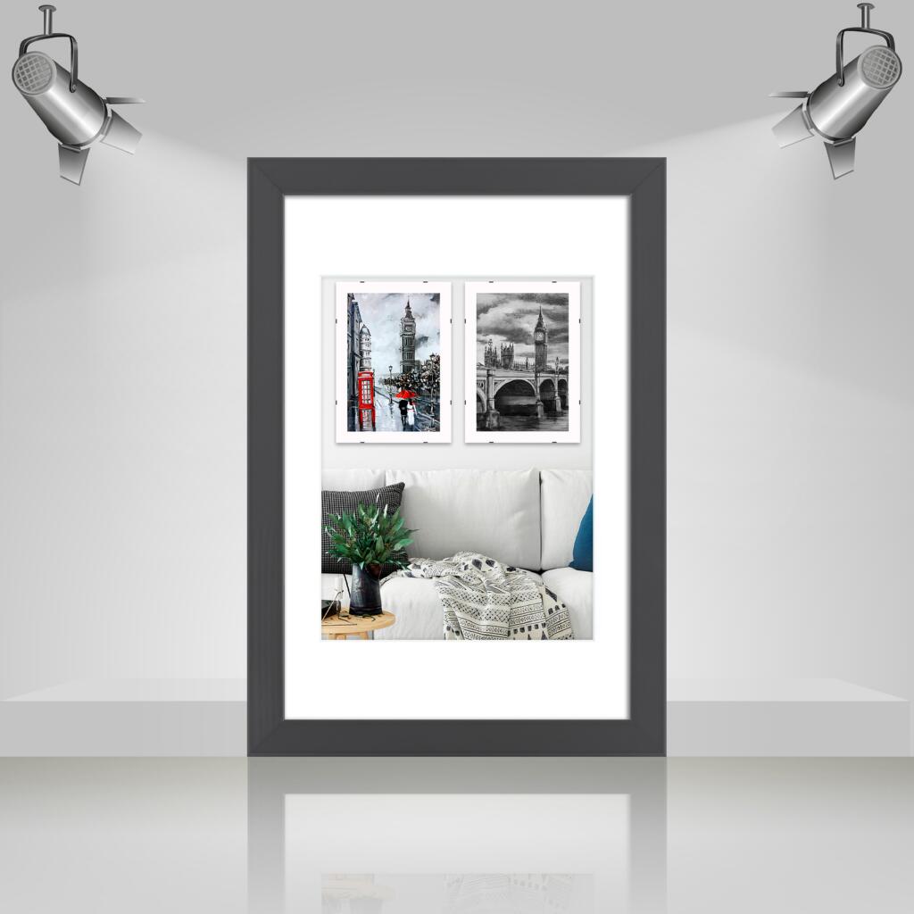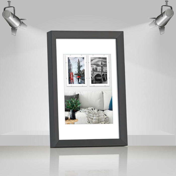 Рамка для фото дерев'яна 20х30 під фото 15х20 багет: AH2220-10 Сірий (з глянцевим склом 1-1.5мм, двп, паспарту) EmojiFrame