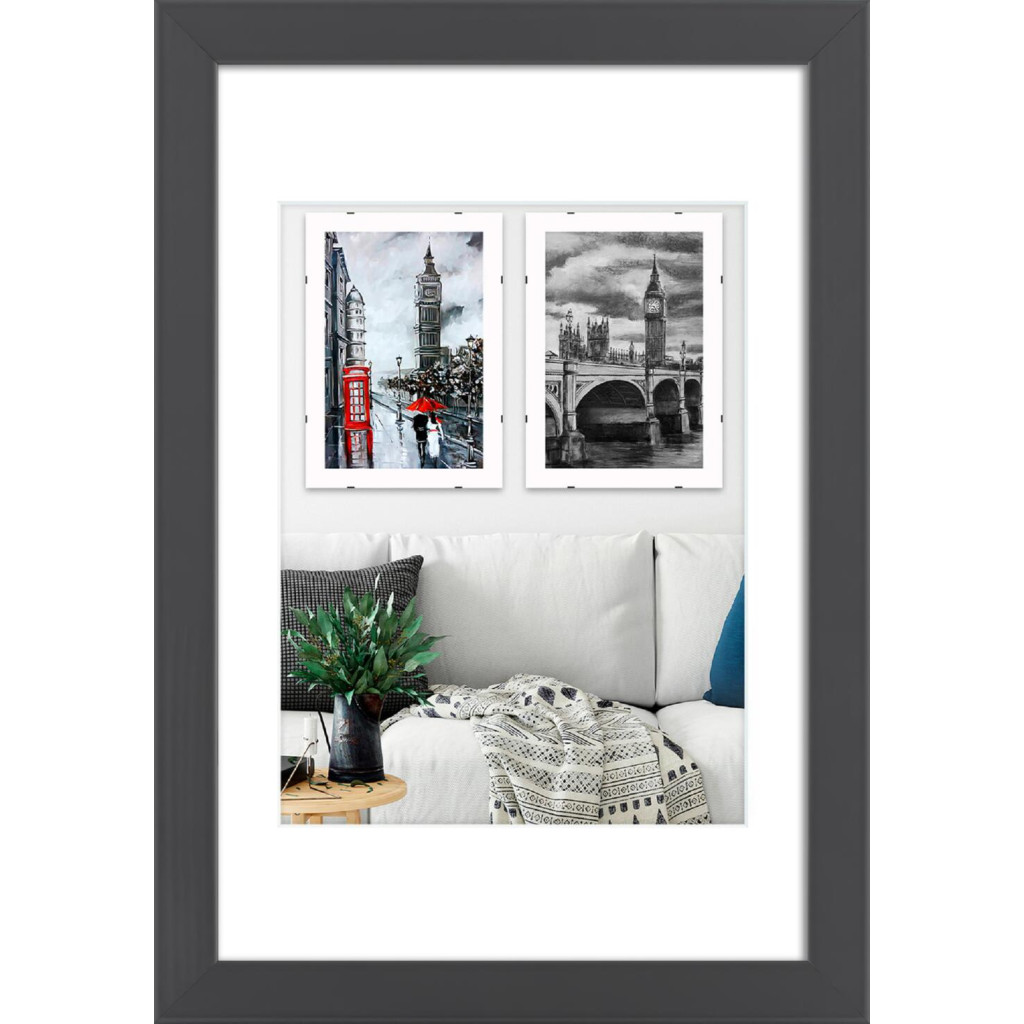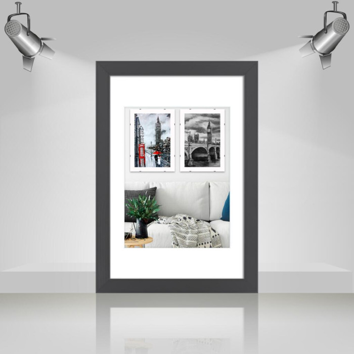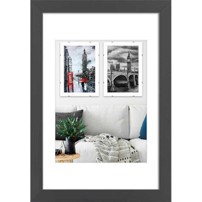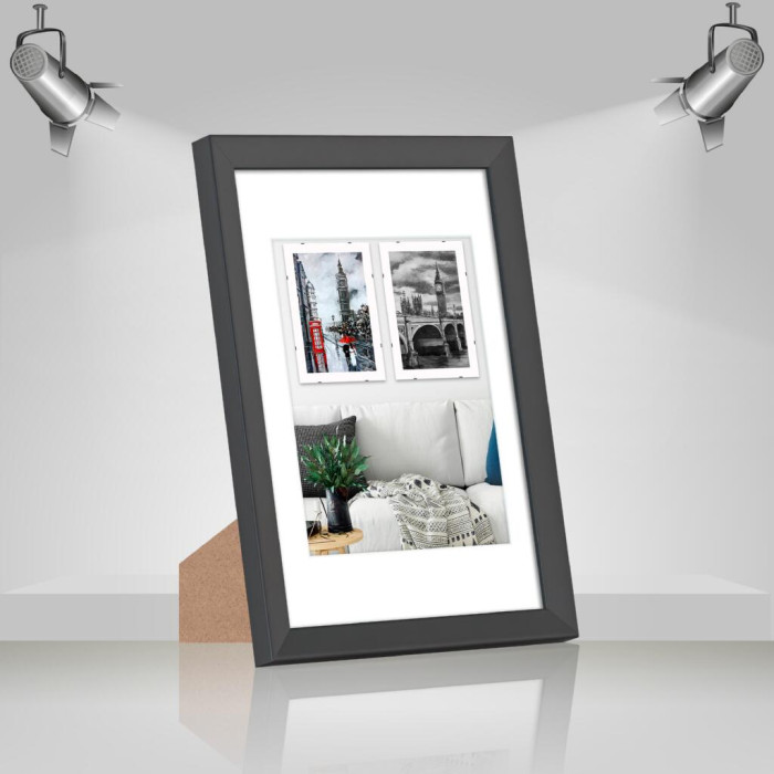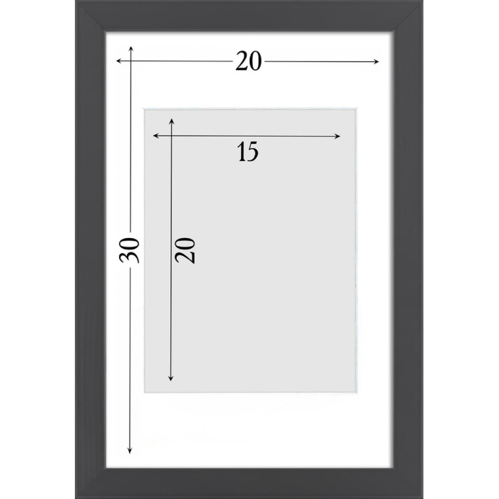 Рамка для фото дерев'яна 20х30 під фото 15х20 багет: AH2220-10 Сірий (з глянцевим склом 1-1.5мм, паспарту, двп з ніжкою) EmojiFrame
