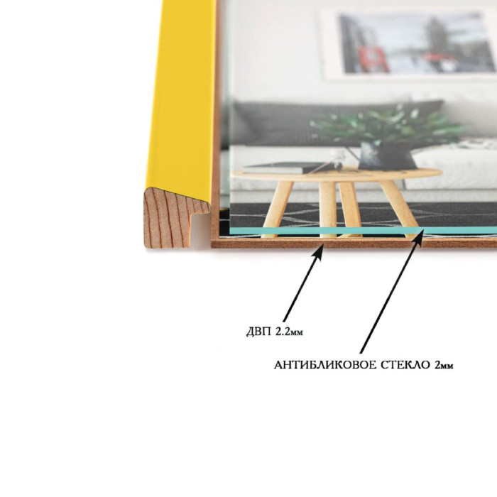Фоторамка дерев'яна 20х30 багет: AH2220-05 Жовтий (з антибліковим склом 2мм, двп) EmojiFrame