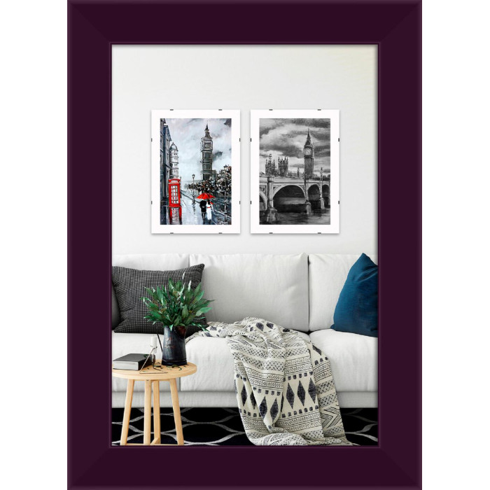 Фоторамка дерев'яна 20х30 багет: AH3322-02 Фіолетовий (з глянцевим прозорим пластиком 0.8мм, двп) EmojiFrame