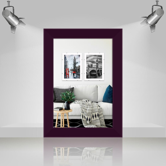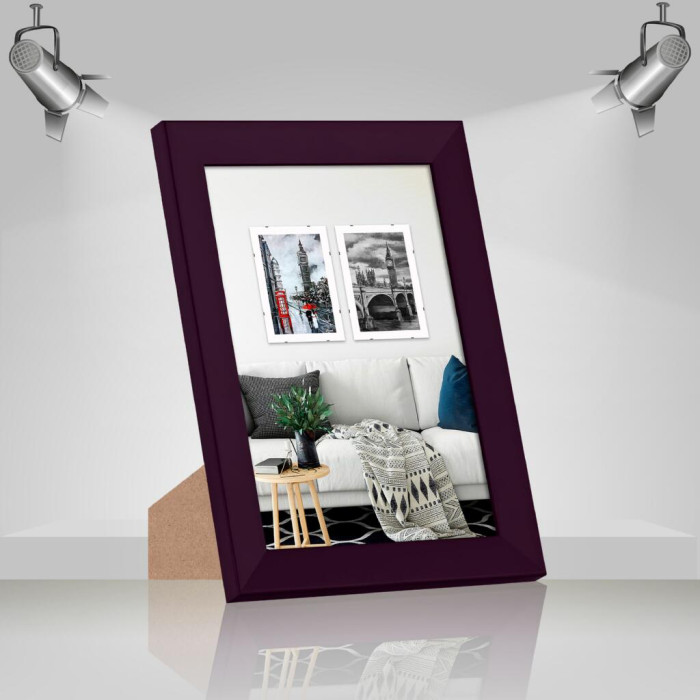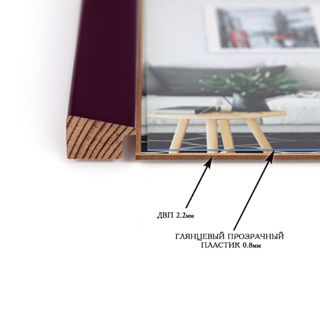 Фоторамка дерев'яна 20х30 багет: AH3322-02 Фіолетовий (з глянцевим прозорим пластиком 0.8мм, двп з ніжкою) EmojiFrame