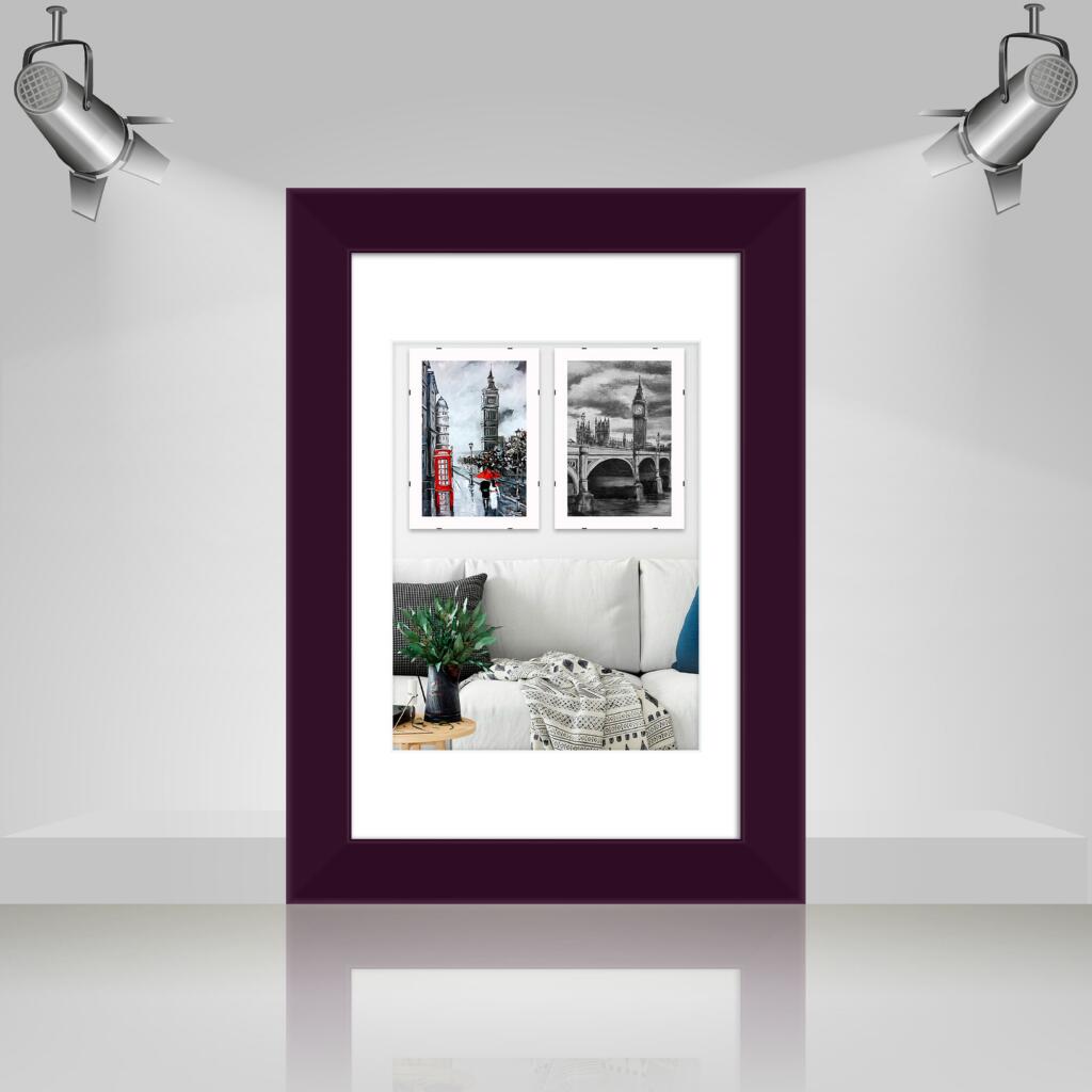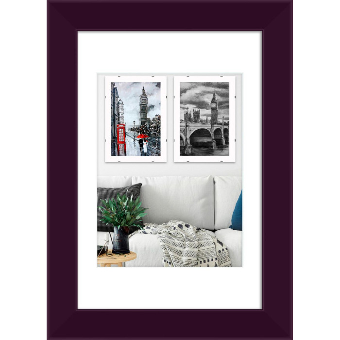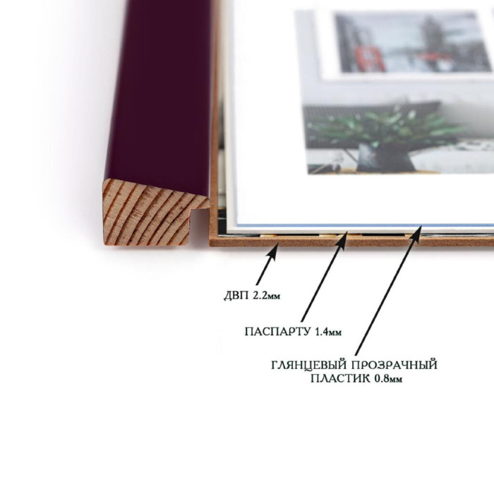 Фоторамка дерев'яна 20х30 під фото 15х20 багет: AH3322-02 Фіолетовий (з глянцевим прозорим пластиком 0.8мм, двп, паспарту) EmojiFrame
