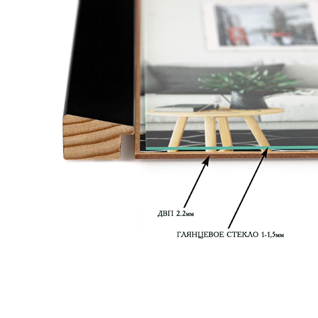 Рамка для фото дерев'яна 20х30 багет: AH3322-03 Чорний (з глянцевим склом 1-1.5мм, двп) EmojiFrame