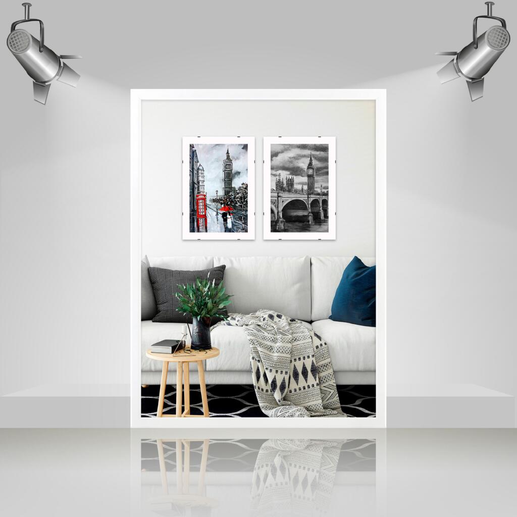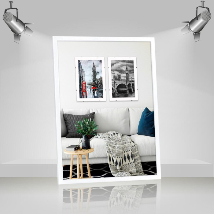Фоторамка дерев'яна 30х40 багет: DL1506-10 Білий глянець (з антибліковим склом 2мм, двп) EmojiFrame