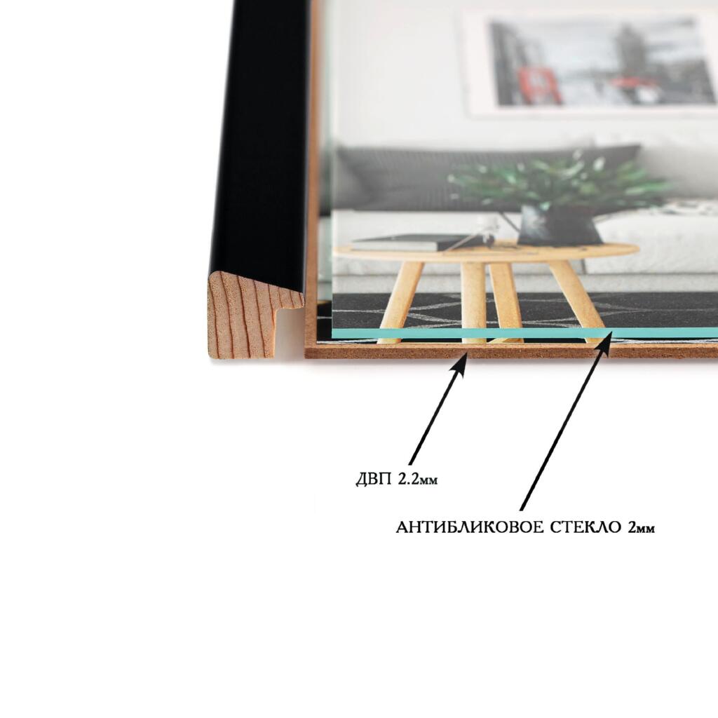 Фоторамка дерев'яна 30х40 багет: AH2220-03 Чорний (з антибліковим склом 2мм, двп) EmojiFrame
