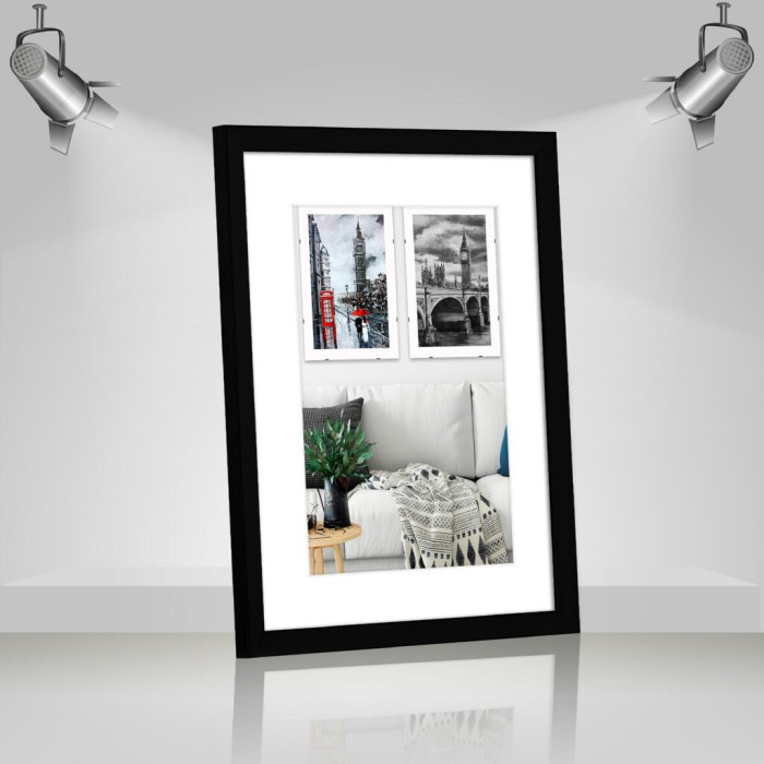 Фоторамка дерев'яна 30х40 під фото 20х30 багет: AH2220-03 Чорний (з антибліковим склом 2мм, двп, паспарту) EmojiFrame