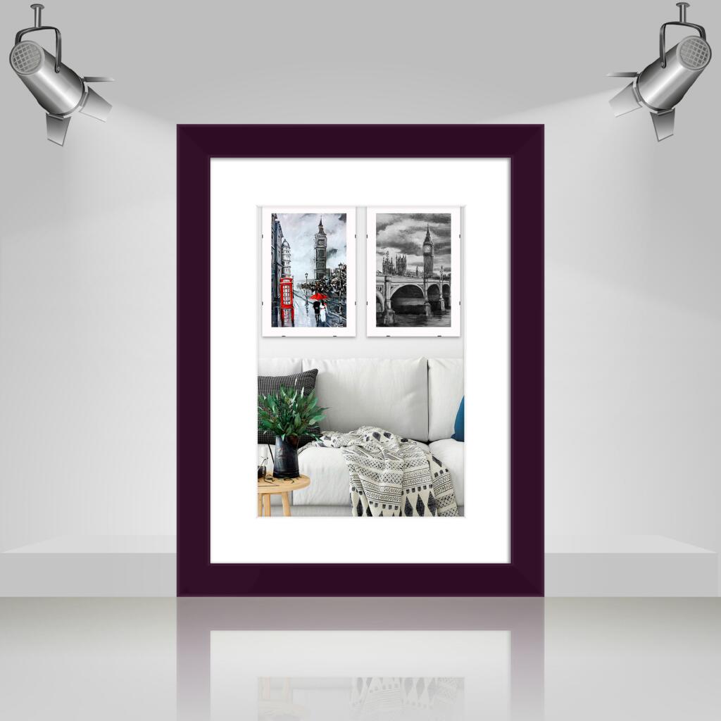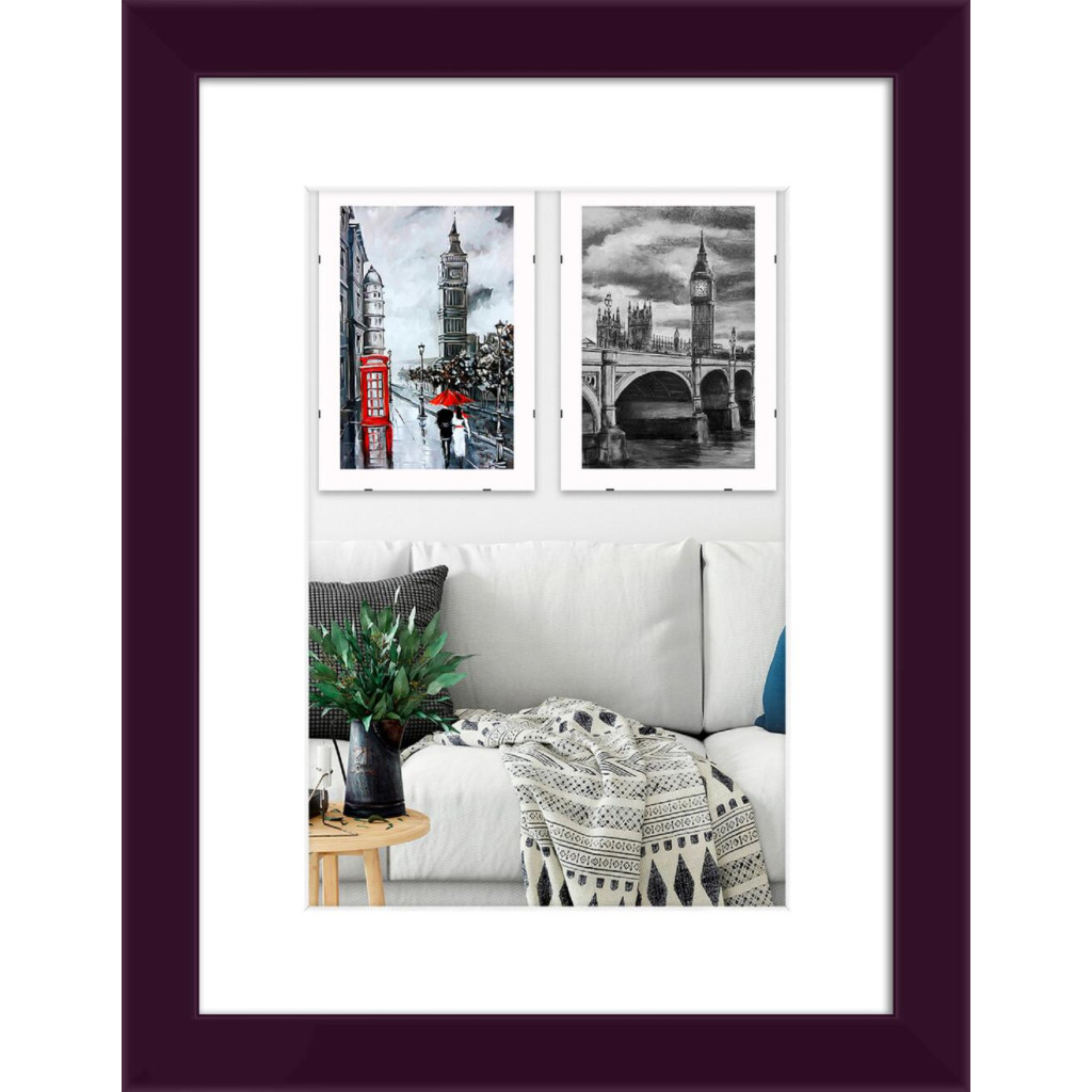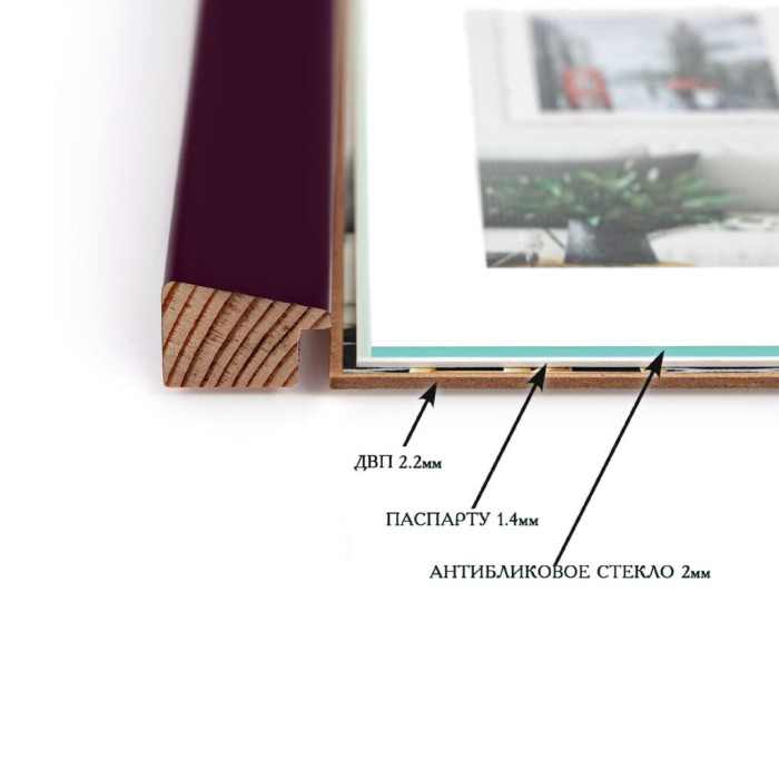Фоторамка дерев'яна 30х40 під фото 20х30 багет: AH3322-02 Фіолетовий (з антибліковим склом 2мм, двп, паспарту) EmojiFrame