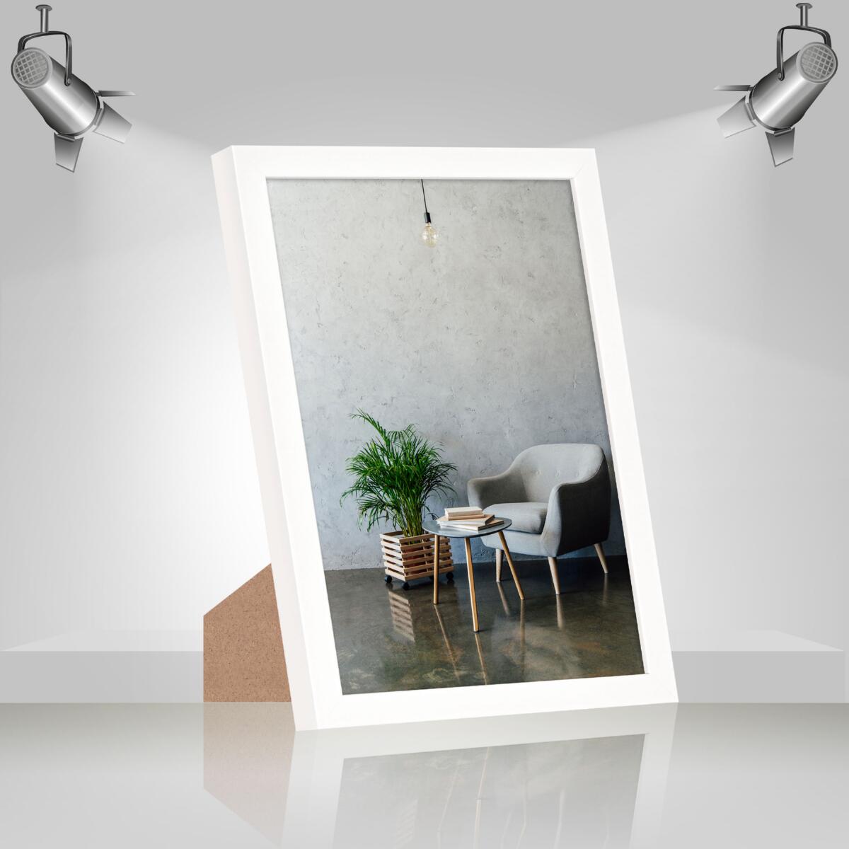 Рамка для фото дерев'яна 21х30 (А4) багет: DL1805-02 Білий (з глянцевим склом 1-1.5мм, двп з ніжкою) EmojiFrame