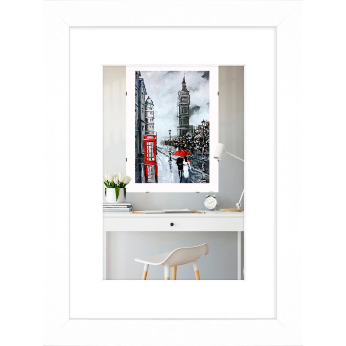 Фоторамка дерев'яна 15х21 (А5) під фото 10х15 багет: DL1805-02 Білий (з антибліковим склом 2мм, паспарту, двп з ніжкою) EmojiFrame