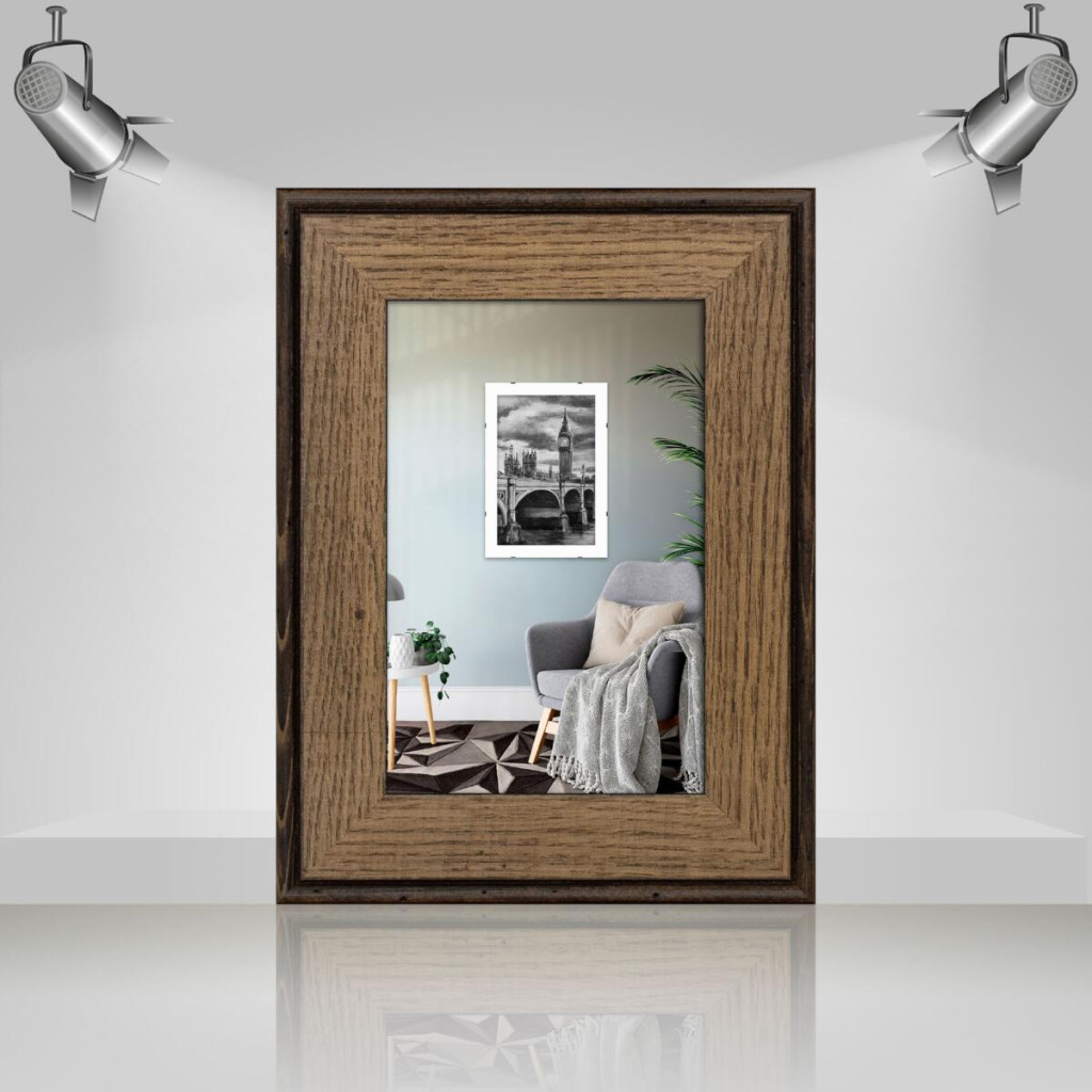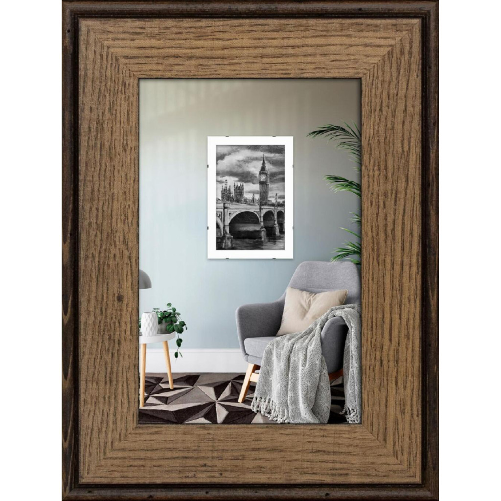 Фоторамка дерев'яна 10х15 багет: DL3302-05 Горіх (з антибліковим склом 2мм, двп з ніжкою) EmojiFrame