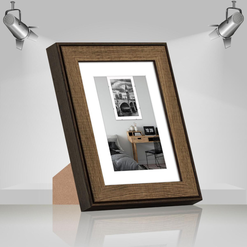 Фоторамка дерев'яна 15х20 під фото 10х15 багет: DL3302-05 Горіх (з глянцевим прозорим пластиком 0.8мм, паспарту, двп з ніжкою) EmojiFrame