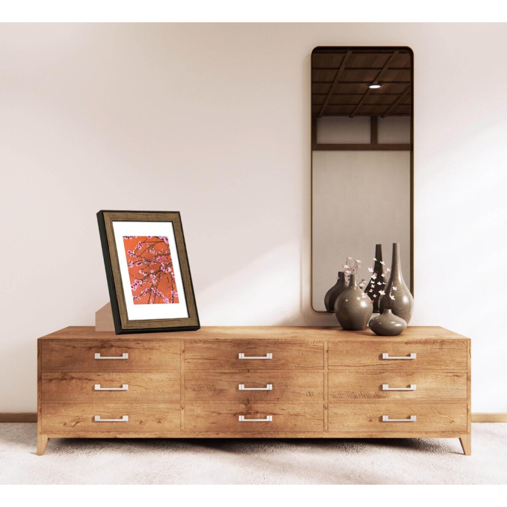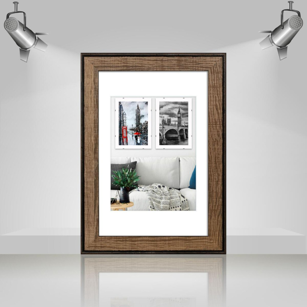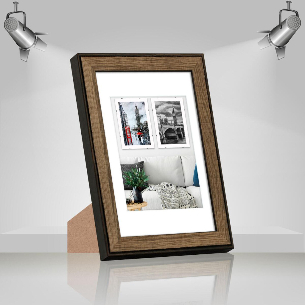 Фоторамка дерев'яна 20х30 під фото 15х20 багет: DL3302-05 Горіх (з глянцевим прозорим пластиком 0.8мм, паспарту, двп з ніжкою) EmojiFrame