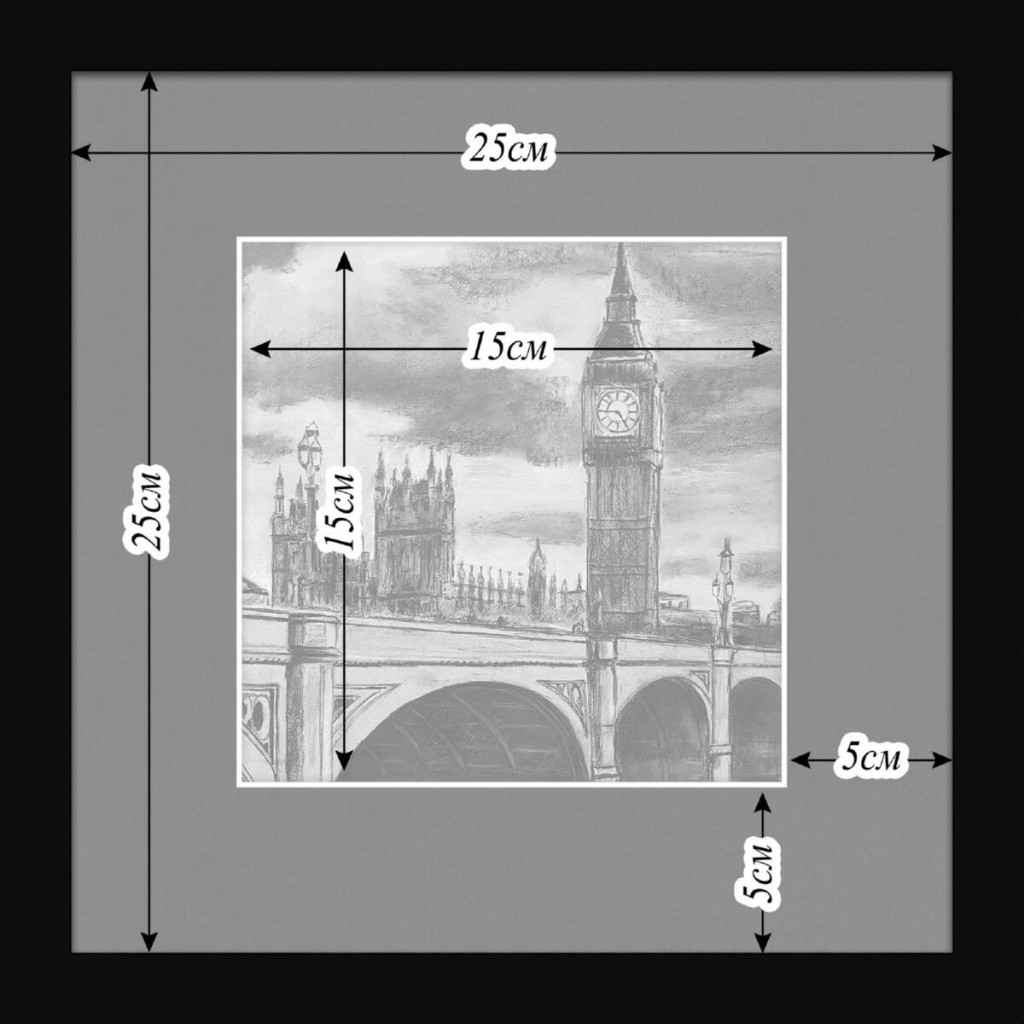 Рамка для фото дерев'яна 25х25 під фото 15х15 багет: DL2001-01 Чорний (з глянцевим склом 1-1.5мм, паспарту чорне, двп) EmojiFrame