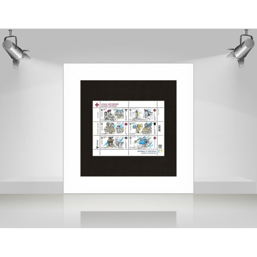 Фоторамка для марки U Слава ЗСУ 18.5-18.5 під марку 9.8-12.8 багет: DL3005-01 білий (з глянцевим склом 1-1.5мм, паспарту чорне, двп) EmojiFrame