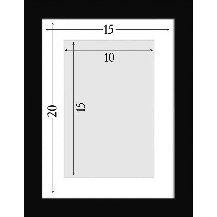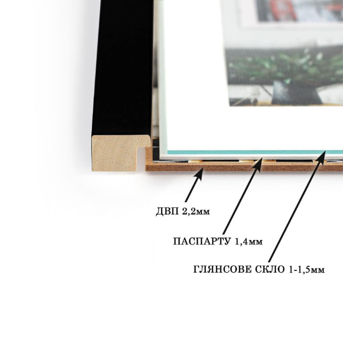Рамка для фото дерев'яна 15х20 під фото 10х15 багет: DL2001-01 Чорний (з глянцевим склом 1-1.5мм, паспарту, двп з ніжкою) EmojiFrame