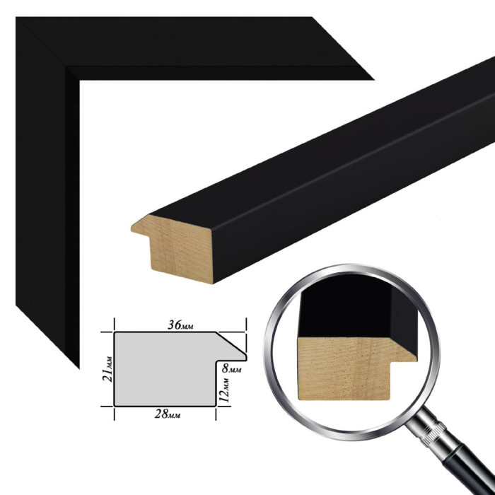 Рамка для фото дерев'яна 20х30 багет: DL3604-01 Чорний (з глянцевим склом 1-1.5мм, двп з ніжкою) EmojiFrame