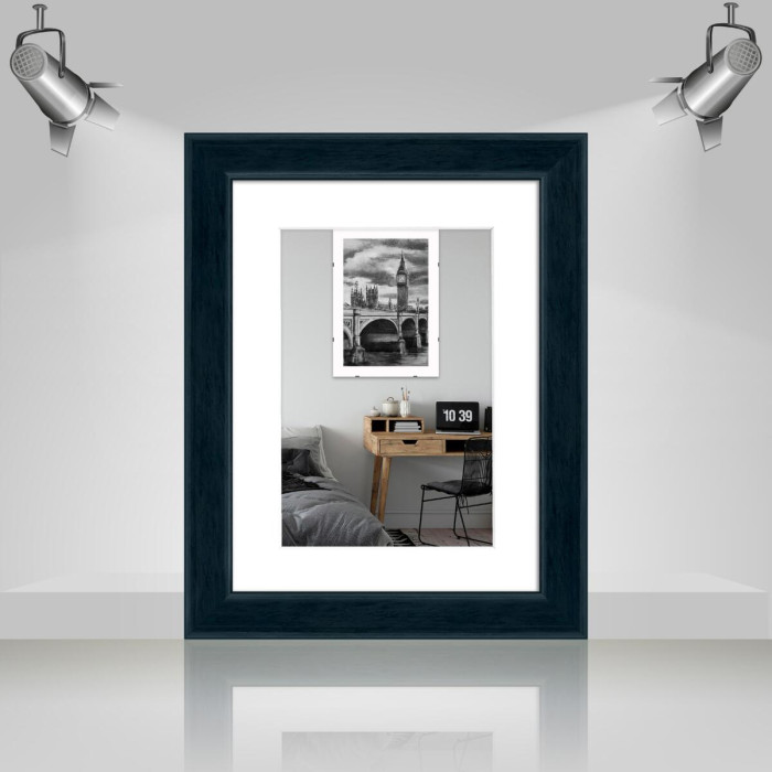 Фоторамка дерев'яна 15х20 під фото 10х15 багет: DL235-108 Морська хвиля (з антибліковим склом 2мм, паспарту, двп з ніжкою) EmojiFrame