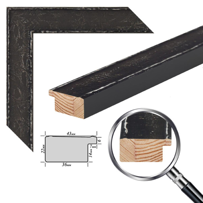 Рамка для фото дерев'яна 15х21 (А5) під фото 10х15 багет: DL4305-08 Темно-сірий зі сріблом (з глянцевим склом 1-1.5мм, паспарту, двп з ніжкою) EmojiFrame