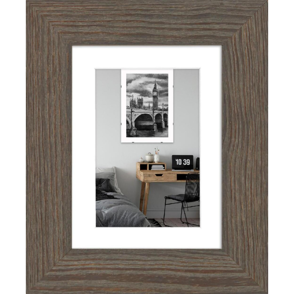 Рамка для фото дерев'яна 15х20 під фото 10х15 багет: DL4307-02 Сіре дерево (з глянцевим склом 1-1.5мм, двп, паспарту) EmojiFrame