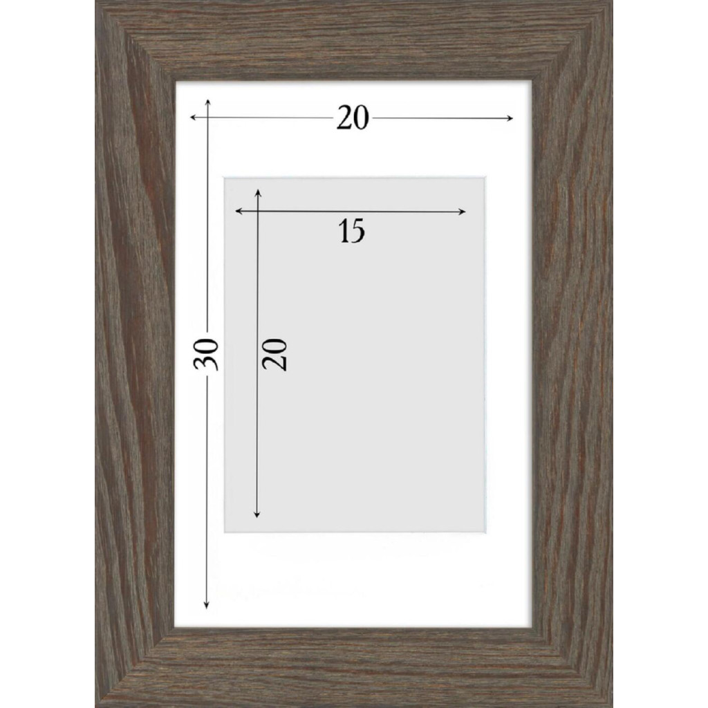Фоторамка дерев'яна 20х30 під фото 15х20 багет: DL4307-02 Сіре дерево (з глянцевим прозорим пластиком 0.8мм, паспарту, двп з ніжкою) EmojiFrame