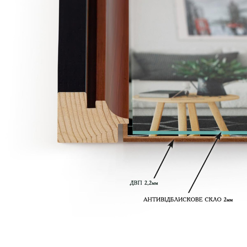 Фоторамка дерев'яна 30х40 багет: DL4311-01 Темне дерево (з антибліковим склом 2мм, двп) EmojiFrame