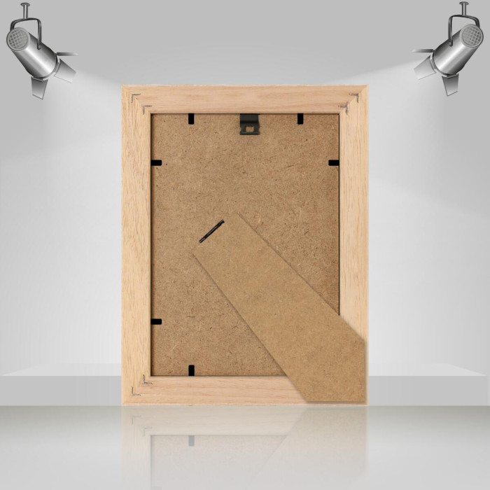 Фоторамка дерев'яна 15х21 під фото 10х15 багет: DL3005-01 Білий (з глянцевим прозорим пластиком 0.8мм, паспарту чорне, двп з ніжкою) EmojiFrame