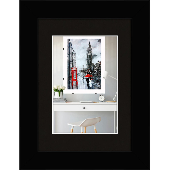Фоторамка дерев'яна 15х21 під фото 10х15 багет: DL3005-02 Чорний (з глянцевим склом 1-1.5мм, паспарту чорне, двп) EmojiFrame