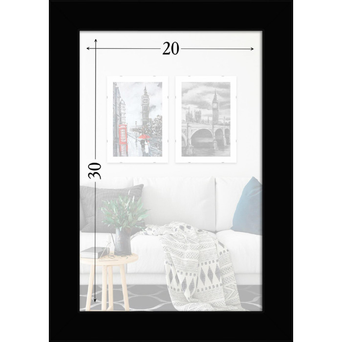 Фоторамка дерев'яна 20х30 багет: DL3005-02 Чорний (з акриловим склом 1.5мм, двп) EmojiFrame