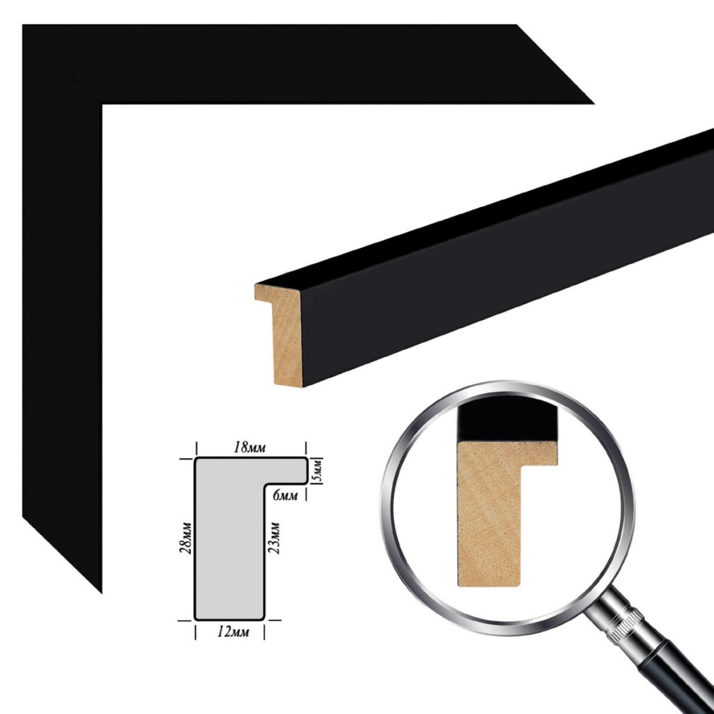 Фоторамка дерев'яна 21х30 під фото 15х20 багет: DL1805-01 Чорний (з глянцевим прозорим пластиком 0.8мм, паспарту чорне, двп з ніжкою) EmojiFrame