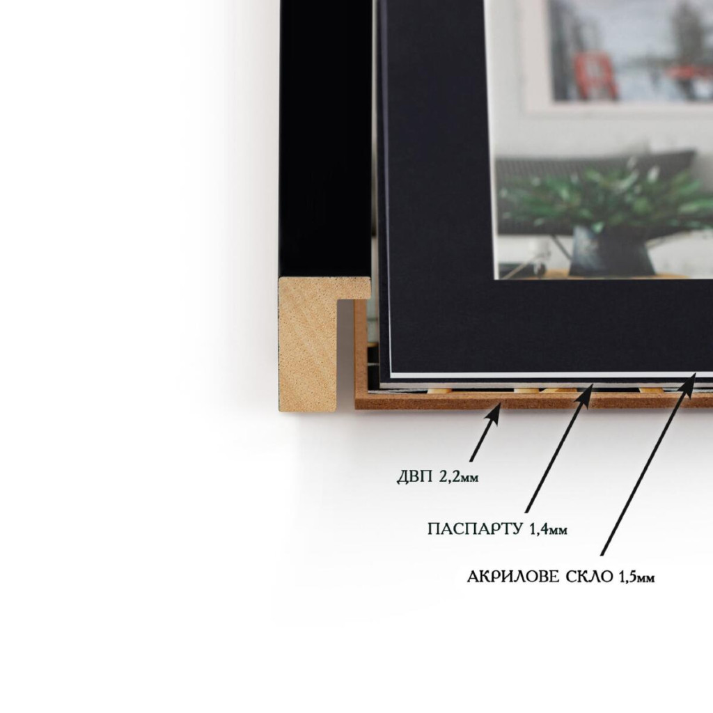 Рамка для фото дерев'яна 13х18 під фото 10х15 багет: DL1805-01 Чорний (з акриловим склом 1.5мм, паспарту чорне, двп) EmojiFrame